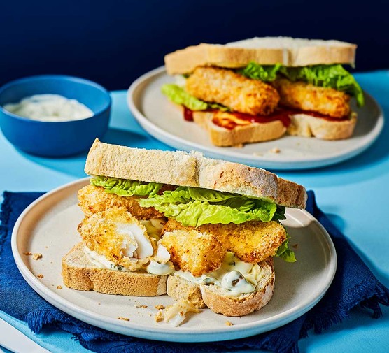To make a sandwich, butter two slices of bread, then spread a thick layer of the tartare sauce or ketchup over one piece. Lay 3-4 fish fingers on top, followed by a few lettuce leaves, then top with the second slice of bread.