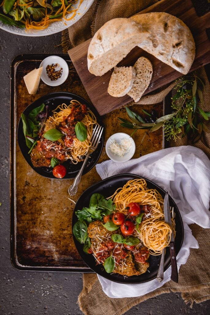 Turns out… yes, yes, and heck yes. Like these fun beef substitutes. And danged if beef parmesan isn’t everything you want it to be. My friends loved this meal, they raved about the use of a chuck roast and said the breading worked perfectly for the beef.