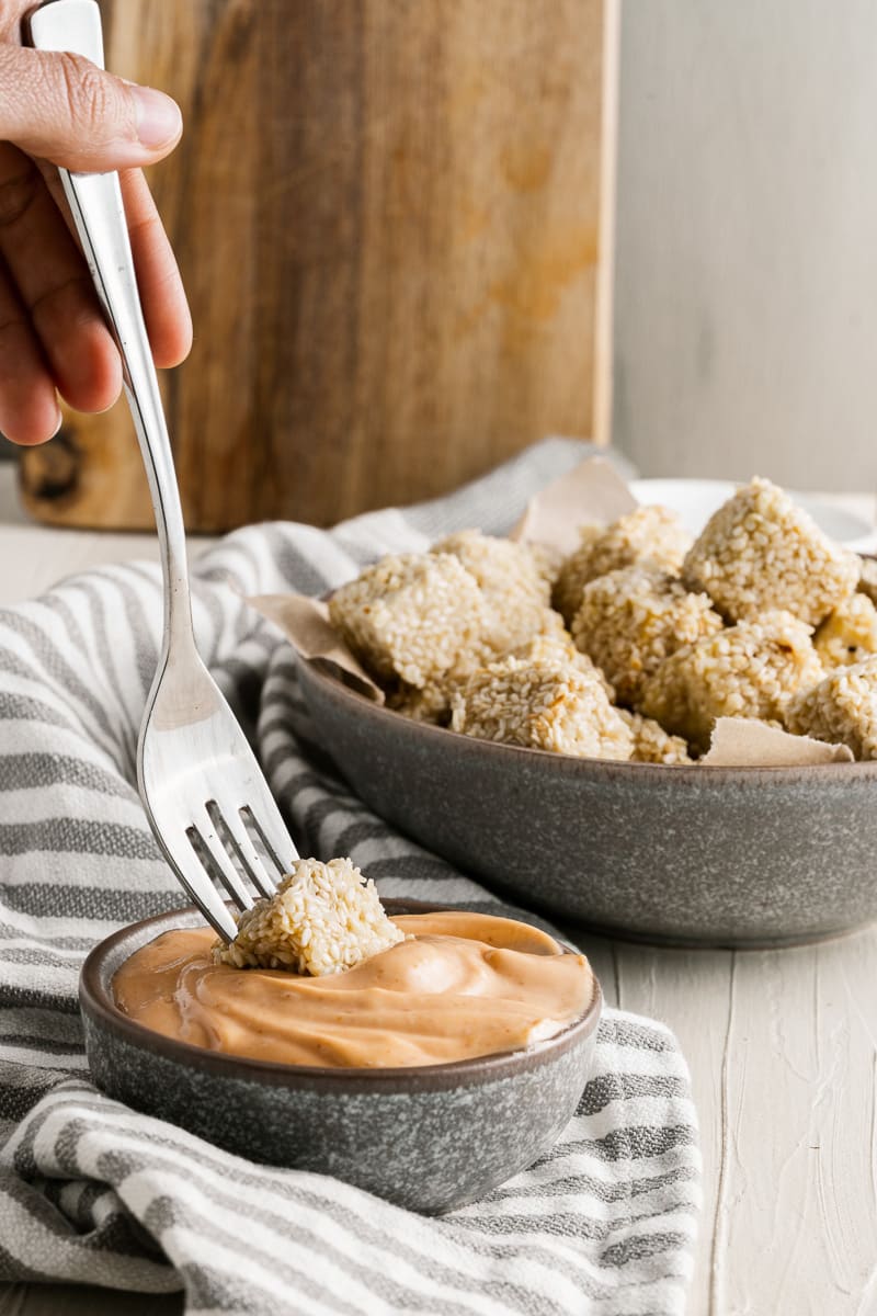 Crispy Sesame Tofu (with Sriracha Mayonnaise)