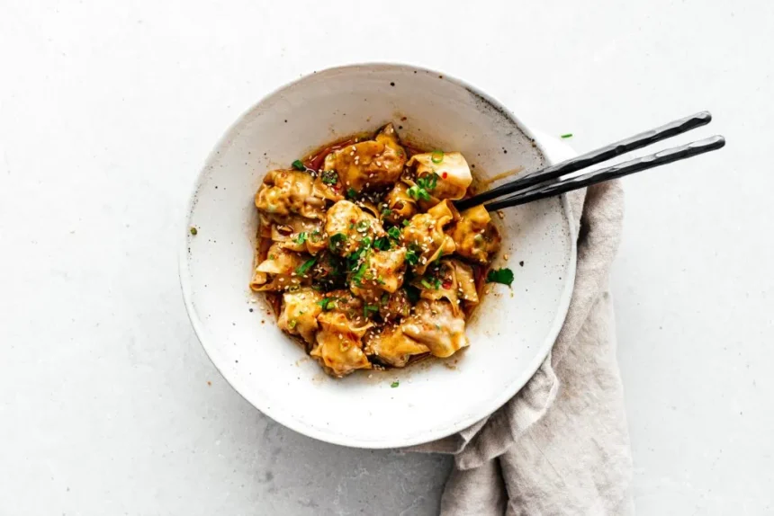Ingredients Pork and Shrimp Wontons 1/4 lb ground pork 1/4 lb shrimp peeled, deveined, and chopped 2 tbsp green onions sliced 2 tsp ginger minced 2 tsp soy sauce 2 tsp shaoxing wine 1/2 tsp toasted sesame oil 1/4 tsp salt 1/8 tsp white pepper Fresh wonton wrappers as needed Spicy Chili…