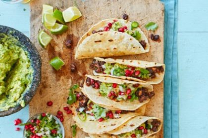 These vegetarian bean tacos, lightly spiced with cumin and smoked paprika, are…