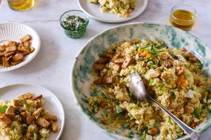 This incredible citrus rice is flooded with orange juice, flecked with celery…