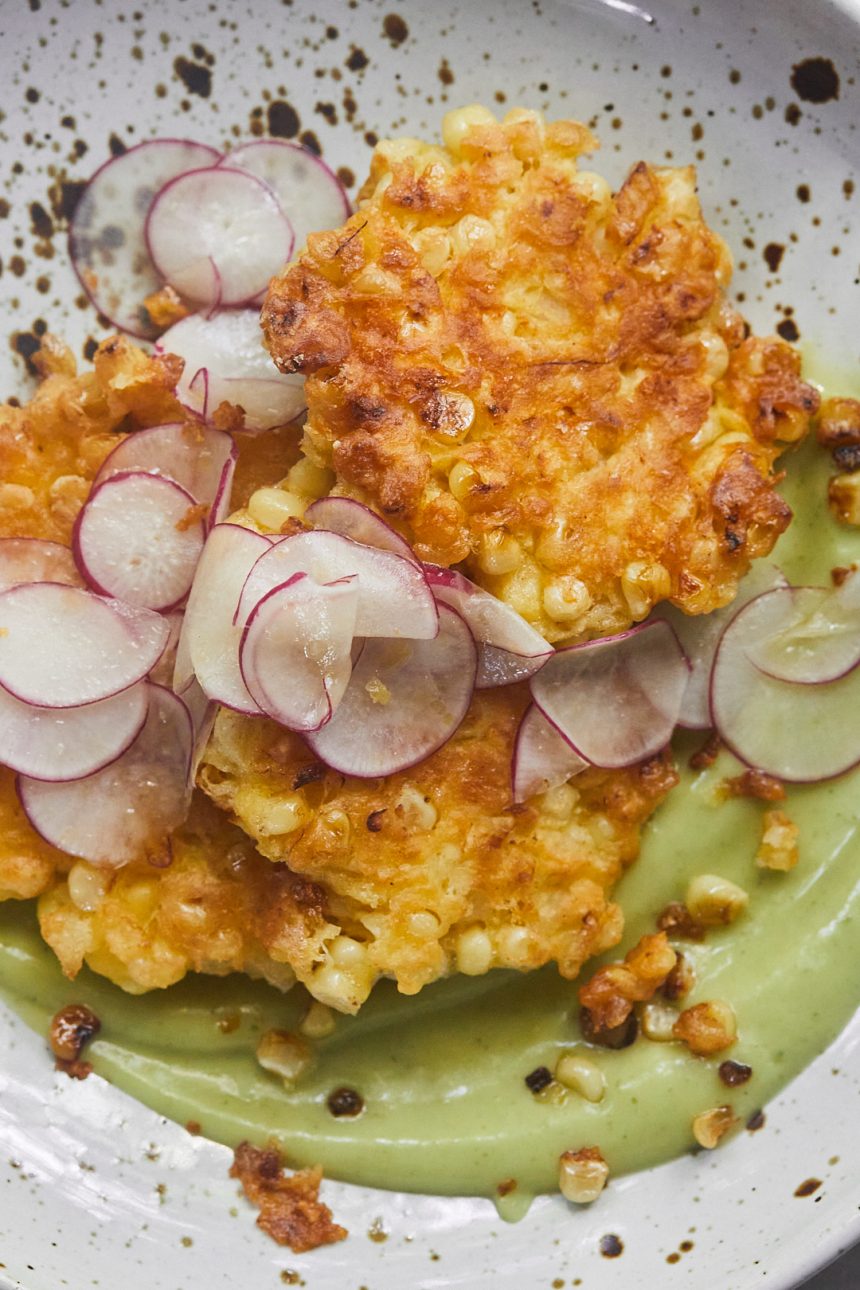 While I’ll gladly eat all kinds of vegetable fritters, my heart is with a solid, sweet corn version. The corn crisps nicely while holding its texture. When it comes to the surface, I don’t like my corn fritters overly cakey, which means using just enough flour to keep all the ingredients together.